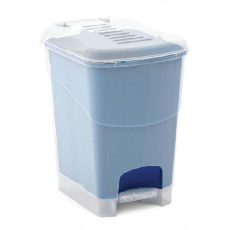 • πλαστικός κάδος απορριμάτων διαφανής εξωτερικά και με μπλε εσωτερικό κάδο